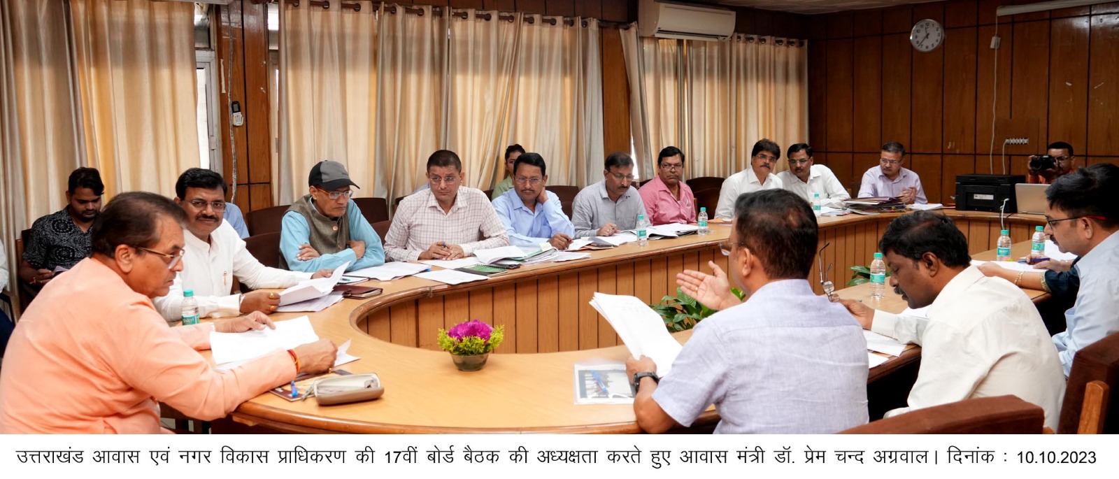 आवास मंत्री डॉ. प्रेम चन्द अग्रवाल ने संबंधित विभागीय अधिकारियों के साथ उत्तराखण्ड आवास एवं नगर विकास प्राधिकरण की 17वीं बोर्ड बैठक की अध्यक्षता की।