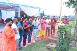 जिसमें स्थानीय लोगों ने जय श्री राम के जयकारों के साथ 14 बीघा निवासी देवेंद्र दत्त जोशी के निवास स्थान से महाध्वजा लेकर रामलीला मैदान नया पुल में विधिवत पूजा अर्चना कर स्थापित की। इसके बाद समिति की ओर से संगीतमय सुंदरकांड कार्यक्रम आयोजित किया गया।