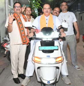 दिल्ली की गलियों में दुपहिया वाहन पर प्रचार के लिए निकले कैबिनेट मंत्री गणेश जोशी, भाजपा के पक्ष में मतदान का किया अनुरोध