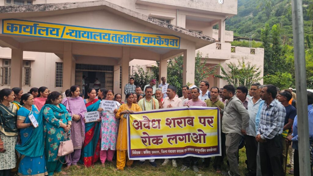 अवैध शराब के खिलाफ ग्रामीणों ने किया यमकेश्वर तहसील का घेराव।