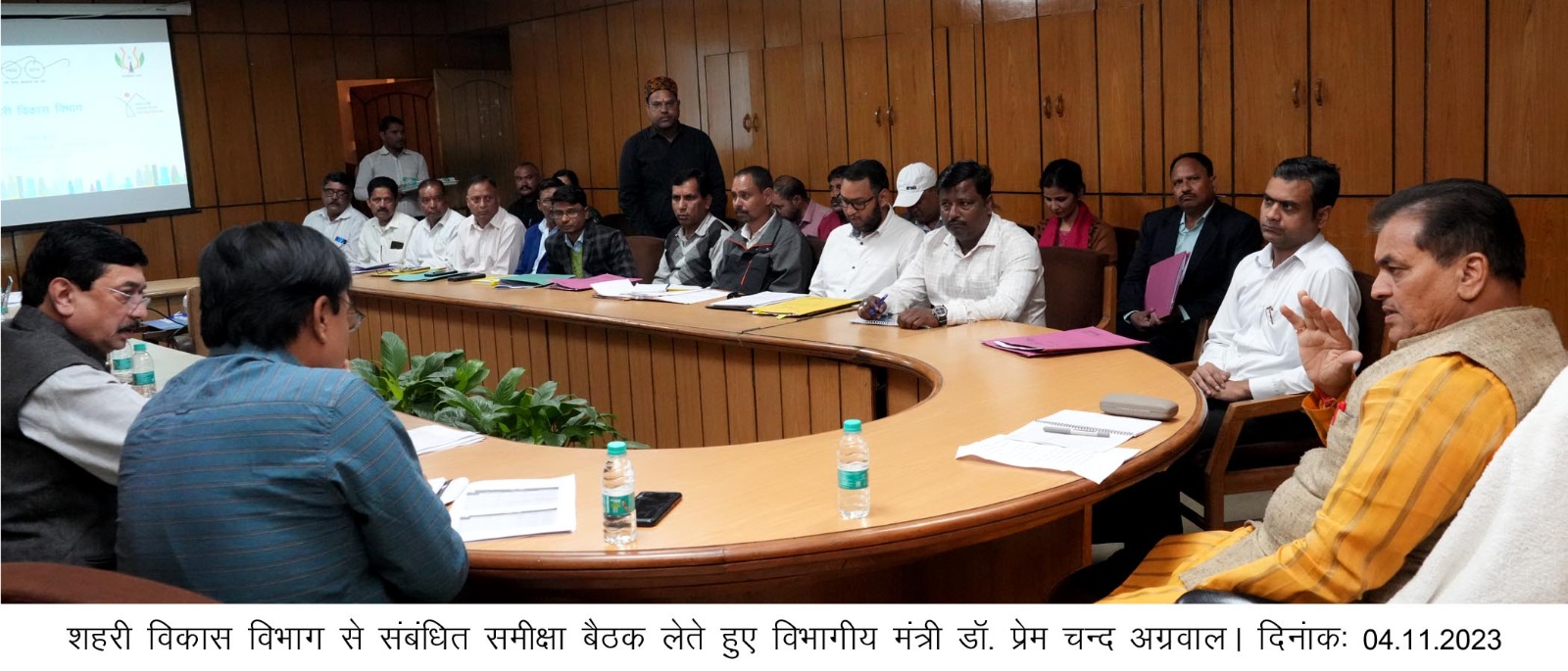 शहरी विकास मंत्री डॉ. प्रेम चन्द अग्रवाल ने विधान सभा स्थित सभागार कक्ष में नगर निकाय के अधिकारियों के साथ बैठक की।
