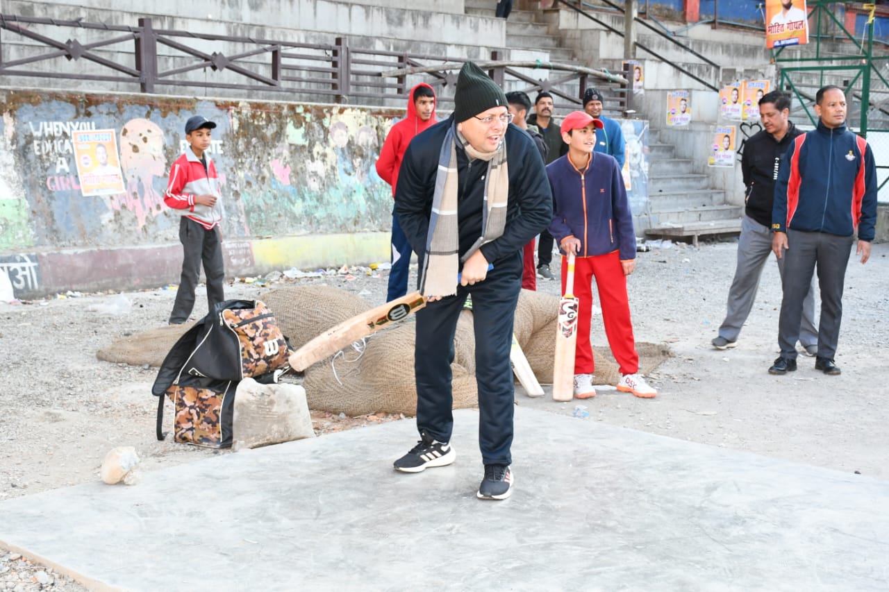 धामी सादगी के साथ अपने चित परिचित अंदाज निकले भ्रमण पर बच्चों के साथ खेला क्रिकेट, बच्चे हो गए खुश
