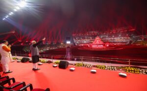 राष्ट्रीय खेलों की ग्रीन गेम्स की थीम पर प्रधानमंत्री प्रभावित नजर आए। ई-वेस्ट से पदक निर्माण, विजेता खिलाड़ियों के स्तर पर पौधरोपण जैसी पहल पर प्रधानमंत्री खूब बोले। उन्होंने इसके साथ ही, धामी सरकार के प्लास्टिक मुक्ति के लिए किए जा रहे प्रयासों को भी खुलकर सराहा।