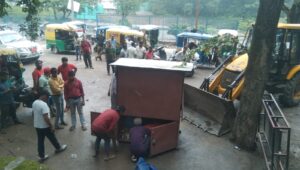 एक अस्थाई अवैध अतिक्रमण को ध्वस्त किया। प्रभारी सफाई निरीक्षक कैलाश चंद्र सेमवाल ने बताया कि खारास्रोत पार्किंग के आसपास लगातार अवैध रूप से मांस मछली विक्रय करने की शिकायतें प्राप्त हो रही थी जिसके तहत यह कार्रवाई की गई है।