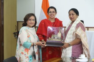 दिल्ली की नवनियुक्त मुख्यमंत्री रेखा गुप्ता से शिष्टाचार भेंट करती नेहा जोशी