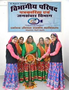 धर्मानंद उनियाल राजकीय महाविद्यालय, नरेंद्रनगर में IQAC के बैनर तले पत्रकारिता एवं जनसंचार विभाग की छात्र विभागीय परिषद् द्वारा विभिन्न कार्यक्रमों का सफल आयोजन किया गया। इस अवसर पर छात्र-छात्राओं ने मनमोहक सांस्कृतिक प्रस्तुतियों के साथ-साथ वृत्तचित्र निर्माण और भाषण प्रतियोगिताओं में उत्साहपूर्वक भाग लेते हुए अपनी रचनात्मकता और प्रतिभा का प्रभावशाली प्रदर्शन किया।