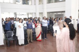 कार्यक्रम का शुभारम्भ करते हुए संस्थान की प्रभारी कार्यकारी निदेशक और डीन एकेडमिक प्रो. जया चतुर्वेदी ने कहा कि स्वच्छत भारत दिवस का आयोजन केवल एक प्रतीकात्मक गतिविधि ही नहीं है, बल्कि यह प्रत्येक व्यक्ति से स्वच्छभारत में योगदान देने का आह्वान भी है। उन्होंने कहा कि गांधी जी का आत्मनिर्भर और स्वस्थ राष्ट्र का सपना तभी साकार हो सकता है जब स्वच्छता, स्थिरता और इसके प्रति जिम्मेदारी हमारी राजेमर्रा का हिस्स बन जांय। महात्मा गांधी जी को पुष्पाजंलि अर्पित करते हुए फेकल्टी सदस्यों, अधिकारीगणों और अन्य स्टाफ द्वारा संस्थान परिसर के भीतर और बाहर क्षेत्रों में पर्यावरणीय जिम्मेदारी सुनिश्चित करने और स्वच्छता बनाए रखने के लिए स्वच्छता शपथ ली गई।